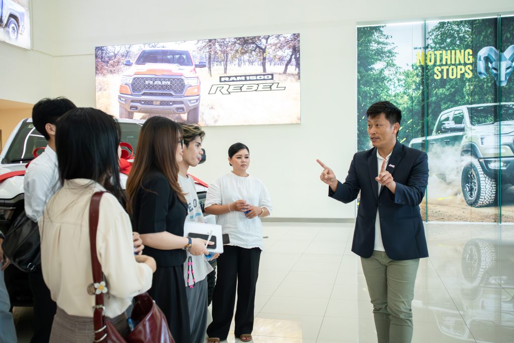 Un moment fort de la visite a été la découverte des showrooms modernes, où les étudiants ont pu explorer une gamme de véhicules de marques internationales reconnues telles que Ford, RAM et Jeep, rendant l’expérience encore plus immersive et dynamique.